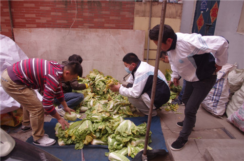 十一月的清晨,天空下着点点飘雪,天气有些寒冷,但些许的寒冷并没有减弱同学们的热情。上午9时,践行社一行人带着满载祝福的果篮到达了“晚详宁”养老院,与养老院负责人齐阿姨沟通后,齐阿姨安排同学们分组开展活动。有的陪老人聊家常,讲故事,说趣闻;有的帮助齐阿姨打扫卫生,搬运冬储蔬菜;有的进入食品间与厨师一起为老人们准备午餐吃的水饺。