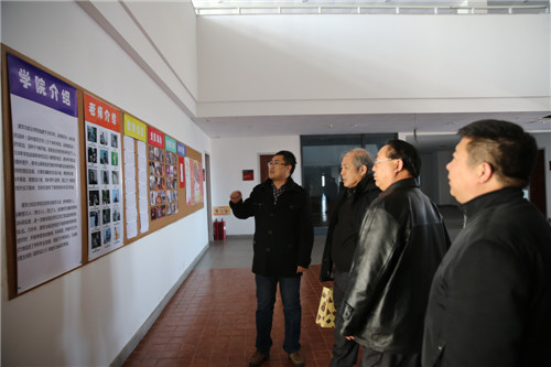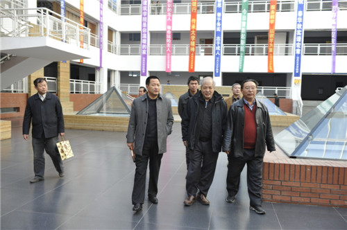 石曙光校长及有关学院、部门负责人雷雨霖、李英杰、李连富、王福、刘向军、张杰等人接待并陪同陈明竺教授分别考察了公共艺术和建筑与规划两个学院。