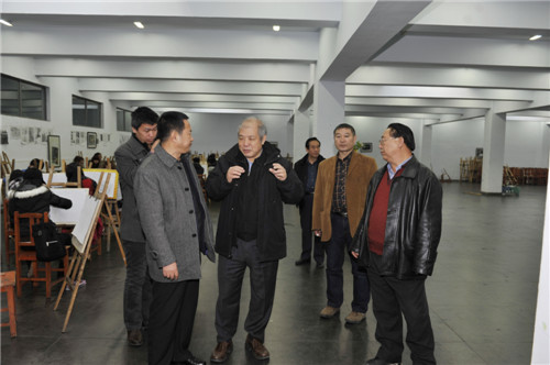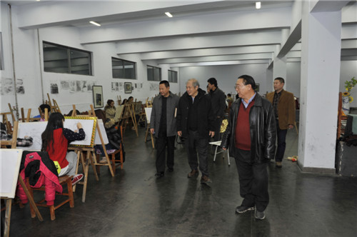 而后,陈明竺教授参观了公共艺术学院的画室、二楼中厅、三楼走廊展示区、学生实训成果展室。他驻足在走廊展示区观看学生的实习作品和学生实训成果展室,询问他所感兴趣的问题,听取学院领导的介绍,并和在场老师亲切交流看法。陈明竺教授强调了素描、色彩基础课的重要性,对实践教学改革给予充分肯定。