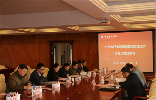 根据省高校工委《关于开展全省高校基层党建工作检查的通知》(吉高校发[2016]25号)文件精神,2016年11月3日,省高校工委正处级组织员刘桂军带队,吉林财经大学党委组织部长李栋栋、长春工业大学党委宣传部长王鸣晖组成的党建工作检查组来我校检查指导党建工作。校长孙雷,党委书记、副校长吴延红,党委副书记、副校长王玫及学校党建工作领导小组成员参加了迎检工作。