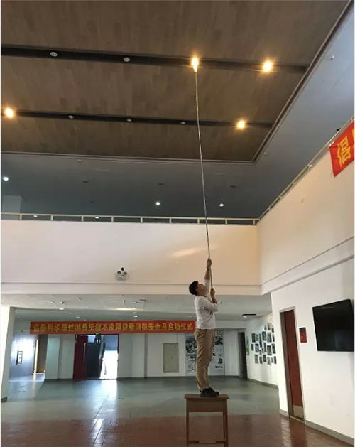 【建筑与规划学院】提出了“创业难、守业更难!一粥一饭当思来之不易,一水一电理应倍加珍惜!”的宣传口号,自制小工具解决了高空作业换灯泡的难题。