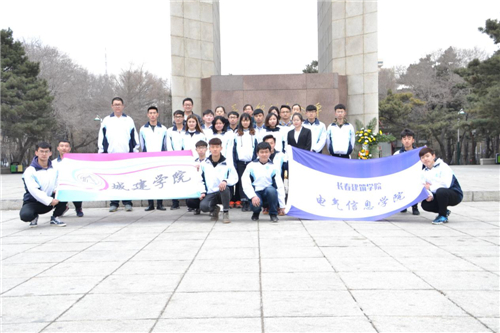 清明节到来之际,为缅怀革命先烈、加强爱国主义教育,2017年3月31日,电气信息学院和城建学院在长春解放纪念碑前共同组织开展了以“清明祭英烈 共筑中华魂”为主题的清明节扫墓活动。电气信息学院党总支书记张丽哲、城建学院党总支副书记兼副院长周鑫、电气信息学院党总支副书记兼副院长史春涛、电气信息学院分团委书记马琰、城建学院分团委书记马力以及两院20余名学生党员参加了活动。