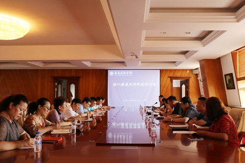 8月11日至8月12日,学校举办了“深入推进迎评促建研讨班”,参加人员为全体校领导和全校中层干部。研讨班分为三项日程:学校集中动员与部署、各单位各部门学习研讨、各单位各部门集中汇报交流。