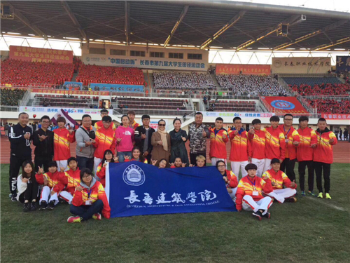 比赛过程中,学校运动员顽强拼搏,观众队伍嘹亮振奋的助威声响彻运动场。经过一天的奋力比拼,学校以团体总分298分的佳绩获得丙组第一名。其中,男子总分169分,位于丙组男子第一名,女子总分129分,位于丙组女子第二名;军训受阅方队获得长春市第九届大学生运动会军训检阅标兵单位;大学生军乐团和国旗护卫队荣获特殊贡献奖;健美操方队获得优秀表演奖;观众队伍获得精神文明奖。