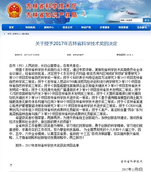 吉林省科学技术奖是学校科研实力和学术影响力的重要体现,也是推荐国家科学技术奖的重要基础。学校将在今后的科研工作中,重点推行合作立项、出成果、获奖项的工作模式,以之不断提升学校的科研水平,创造更多高水平的成果。