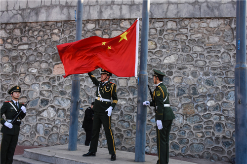 然后升国旗,奏唱国歌。“起来,不愿做奴隶的人们!”伴随着庄严的国歌,五星红旗冉冉升起,象征着在中国共产党的领导下,距离实现中华民族伟大复兴的中国梦越来越近。