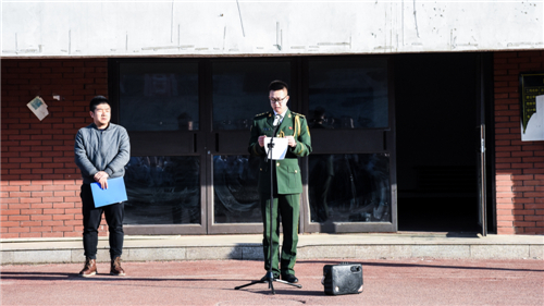 接着,由护卫队前指导员孙春也同学在国旗下做引领发言。孙春也同学通过自身大学四年的经历,鼓励正值青春年华的同学,应该努力成为一名合格的当代大学生、社会的有为青年,去追逐自己的梦想,用饱满的激情和热情为祖国伟大事业献出自己的力量。