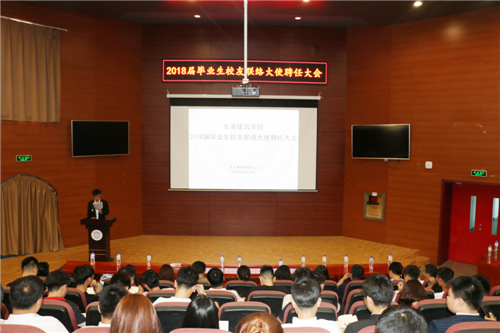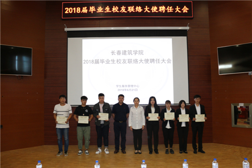 6月21日下午,学校在建筑与规划学院国际学术交流报告厅举行2018届毕业生校友联络大使聘任大会。学校党委副书记、副校长吴延红,学生服务管理中心主任、校友联络处处长李琦和各分院党总支书记、副书记,全体毕业班辅导员老师参加了聘任大会。会议由学生工作处副处长孙一平主持。