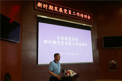 为响应省高校工委“同在党旗下 携手添光彩”号召,进一步加强和改进学校党的建设,推动学校党建工作新提升,7月30日,学校党委在建筑与规划学院学术报告厅举办了新时期党员发展工作培训会,特邀长春大学党委原副处级组织员、现任长春大学就业创业指导中心兼校友办公室主任袁旭东副教授作了题为“把握程序 投入感情 做好新时期发展党员工作”的培训。学校各党总支书记、副书记、组织员、辅导员参加了培训,培训由校党委书记李贵海主持。
