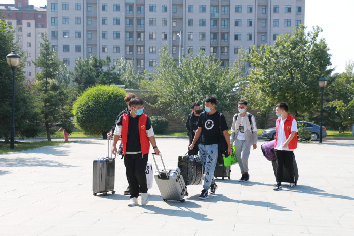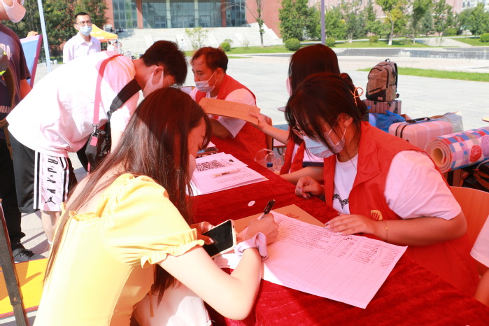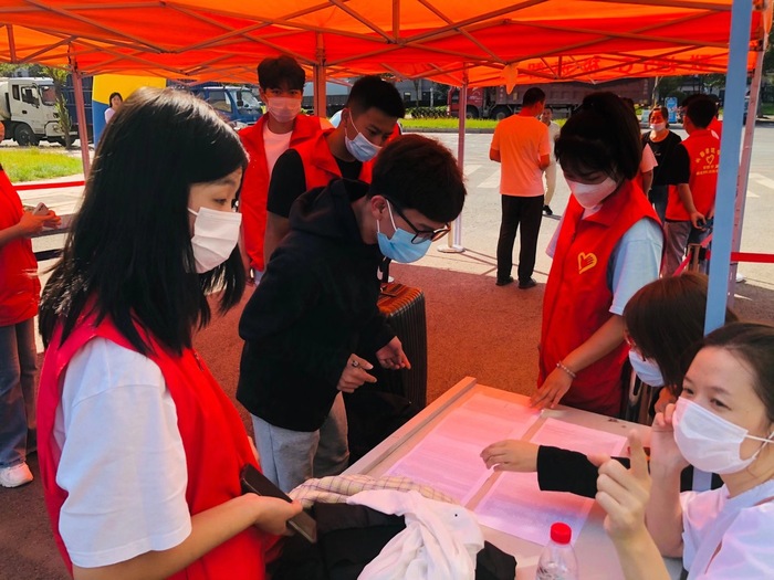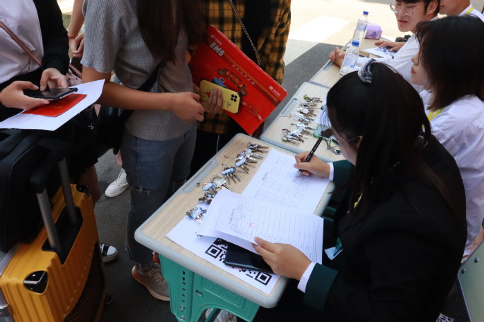 迎新现场的工作开展的如火如荼,到处都是忙碌的身影。扫码测温、登记入校、资格审查、预分宿舍 、缴纳学杂费、办理校园一卡通、领取住宿卡、入住宿舍......这一整个报到流程都有热情的志愿者陪同,不仅高效,更添了温暖和友爱。