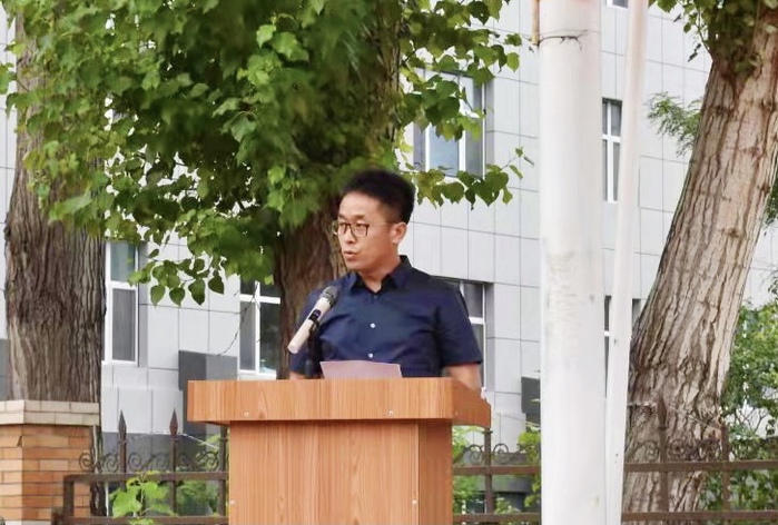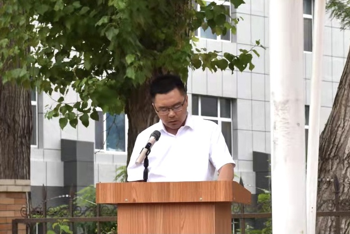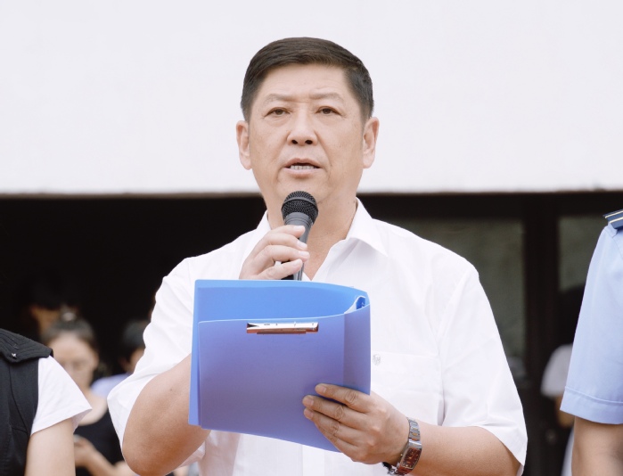 学校健康产业学院党总支书记孙一平在高新校区作军训动员讲话。他向为军训工作付出辛勤劳动的老师和全体参训的学生表示慰问和祝福。要求参训学生要坚定理想信念,在赓续红色血脉中夯实信仰之基,要坚持科学参训,在锤炼意志品质中深化自觉行动。
