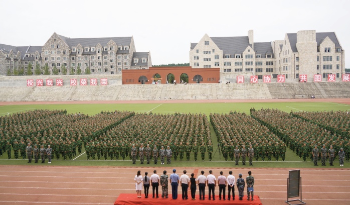 长建学子展风采,共以青春筑芳华。9月6日下午,学校2021级新生军训开营仪式暨军训动员大会在奢岭、高新两个校区体育场同时举行。学校校长助理兼学生服务管理中心主任、学生工作处处长周勇,校团委书记、学生工作处副处长刘珊珊,国防聚志训练团团长王帅,各学院党总支书记、副书记,2021级新生辅导员,国防聚志训练团全体教官,2021级全体新生参加。大会分别由学生工作处武装部部长王丹童、学校文化创意产业学院团委工作负责人常志远主持。