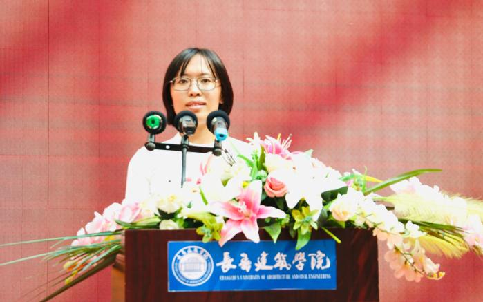 学校2021年“师德标兵” 荣誉称号获得者、思想政治理论教研部副主任赵丽娜代表全体教师发言。她回顾了成为教师的十年心路历程,表示将以更加饱满的热情努力工作和学习,坚守为党育人、为国育才的初心使命,将个人成长与学校发展紧密相连,为高等教育事业发展做贡献。