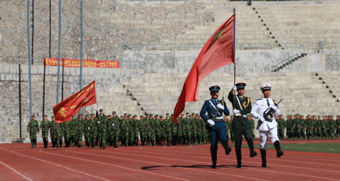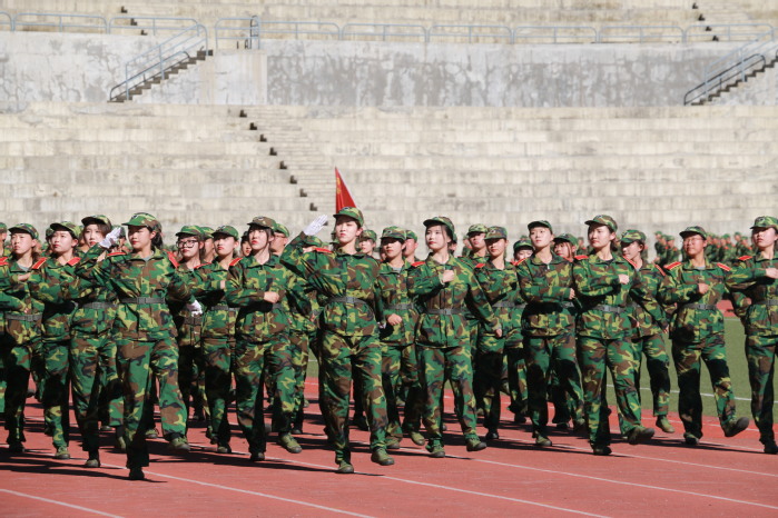 一声令下,31支军训分列式方队,迈着铿锵有力的步伐,依次通过主席台,“校兴我兴,校荣我荣,同心协力,共同发展”的口号声响彻体育场上空。