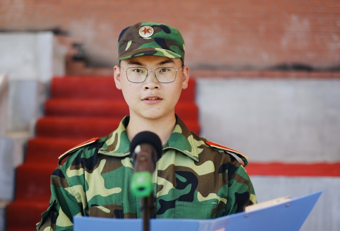 学校管理学院管2101班韩杰同学作为新生代表发言。他表示,短短十二天的军训,军人坚韧不拔、严于律己的精神深深地印刻于心。在接下来的大学生活中,将与同学们共同培养优秀的个人品德,共同高效的完成学业,以师长为榜样,做一名合格的长建人,做一名无愧于时代的优秀大学生。