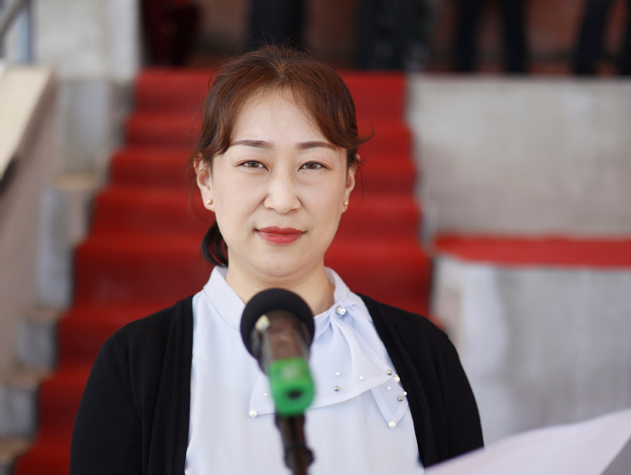 吉林省第二届高等学校教学新秀、学校教学科研服务管理中心主任田甜副教授代表全体教师发言。她希望同学们树立高远的理想追求和炽热的家国情怀,努力做对国家、对民族、对人民有贡献的青年。同时希望同学们要惜时如金,养成独立思考、敢于创新的能力,精进学业,争做新时代“和衷共济,追求一流”长建精神的传承者和奋斗者。