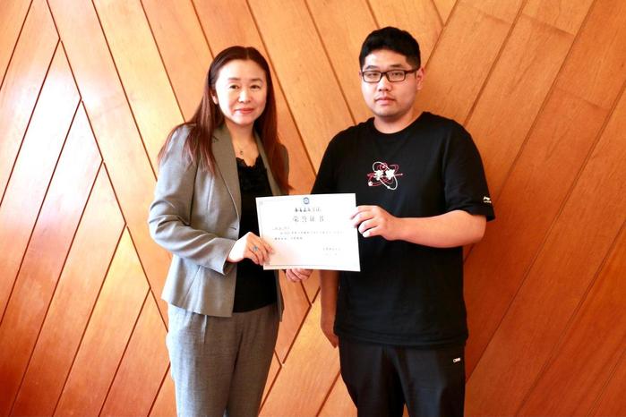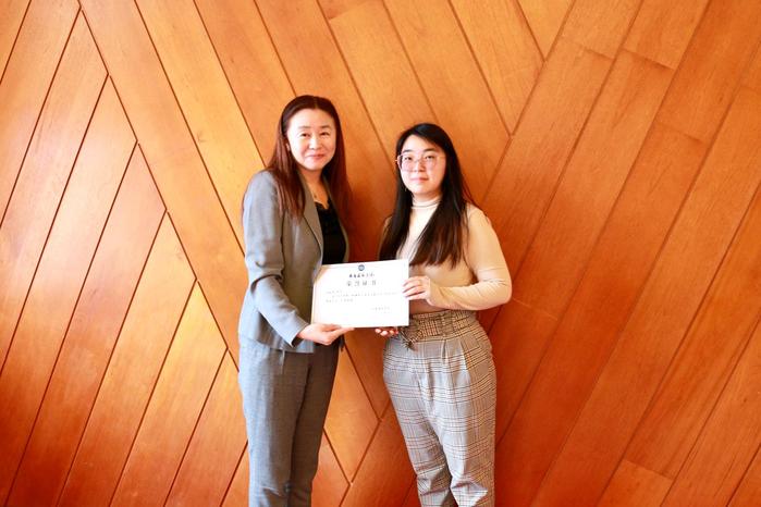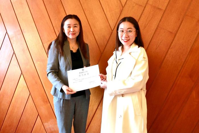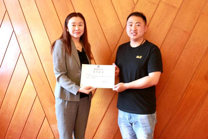 周勇宣布优秀学员名单,王玫为优秀学员颁发荣誉证书。