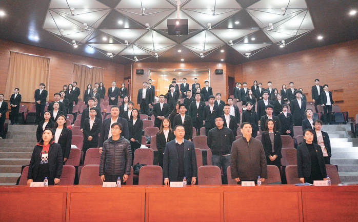 为加强学校团学干部队伍建设,促进学生会工作有效开展,给团学工作注入新的活力,11月23日中午,学校在国际学术报告厅举行学生干部换届大会。学校党委书记王宝龙,校长助理兼学生服务管理中心主任、学生工作处处长周勇,学校团委书记兼学生工作处副处长刘珊珊,学校就业指导中心主任田野,学校校友工作处处长夏凡,各学院团委书记和2018级、2019级校院两级主要学生干部参加大会。大会由学校团委社团管理科科长郭梓睿主持。