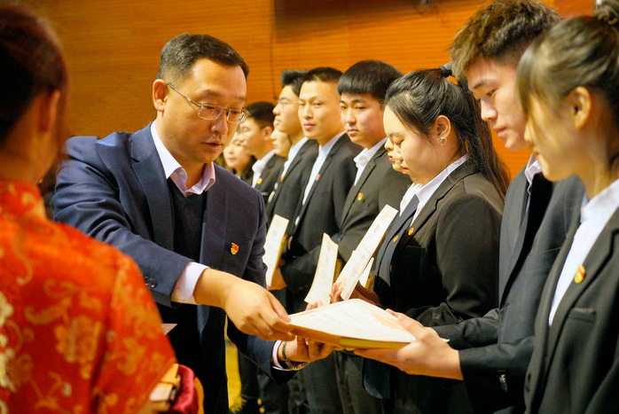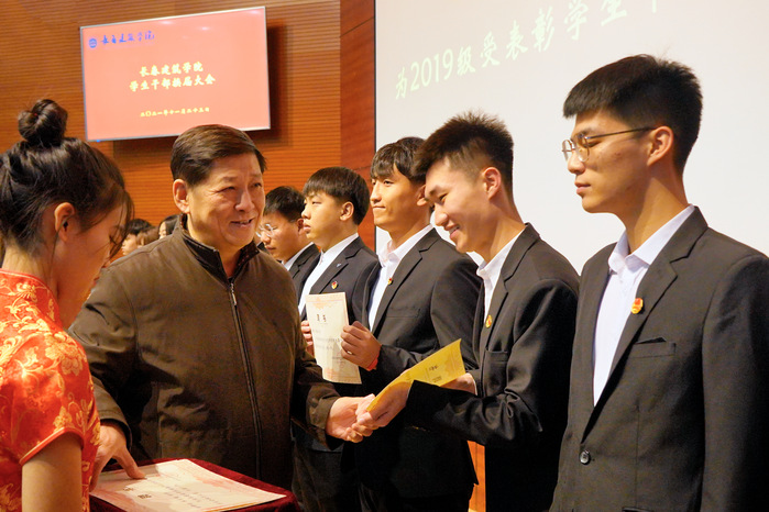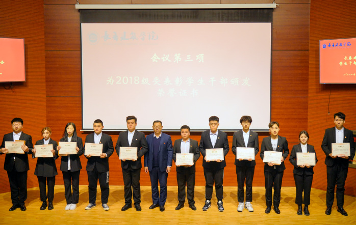 王宝龙为2018级主要学生干部颁发荣誉证书。