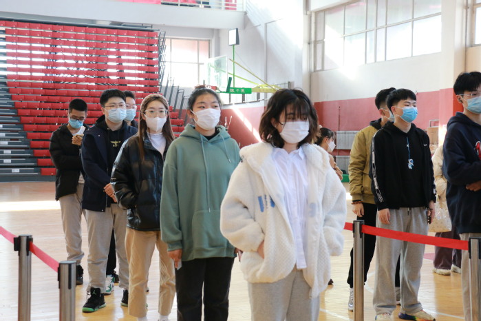 开展本次全员核酸检测工作前,学校疫情防控领导小组进行科学部署,周密安排,在体育馆内设置15条通道同时开展检测工作。同时,各单位部门协同联动,密切配合,提前做好人员统计,组织师生员工分时段、分批次到达检测现场。