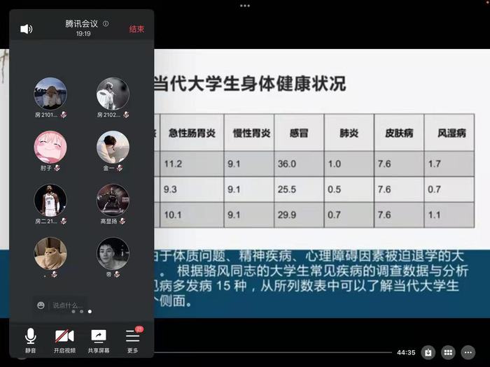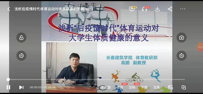 校园封闭管理后,体育教研部的高鹏、邸士恒相继在线上开展了主题为《“后疫情时代”背景下,浅析大学生体育锻炼对体质健康的影响》《大学生养生保健与终身体育意识养成》的讲座,从健康概述,健康与亚健康,适当体育运动对呼吸、消化、心血管、内分泌、神经等各个系统的影响,科学管理膳食、体育锻炼原则等几个方面给学生讲解大学生体育保健的知识和方法,理解终身体育的重要性,指导大学生如何科学地进行体育锻炼。在疫情防控期间加强学生的身心健康,帮助学生在宿舍内科学健身,增强身心素质,提高免疫力,提升自身抵抗力具有科学指导意义。