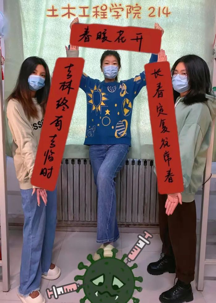 我们来自334寝室。近半个月来,吉林省的疫情变得十分严峻,封闭管控下的我们无时无刻不期盼着疫情赶快结束,去大胆拥抱长建的春天,我们都期待着等疫情结束后,去见心爱的人,与室友去吃火锅小聚一顿,还要带室友回自己的家乡看看!一场疫情,让我们明白:人生没有永远,来日并不方长,一定要活好当下,珍惜眼前,想做的事,快点做。