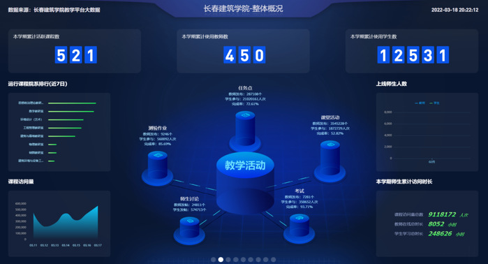 学校教师依托学习通、雨课堂、腾讯课堂、云班课等在线教学平台开展在线教学活动。3月8—18日,全校共开设课程687门,其中专业课675,公共基础课12门;运行班次2434次,上线教师450人,累计学生使用数12531人,教学平台访问量达到29761512人次。在线课程访问量持续增长,师生活跃度持续提升。