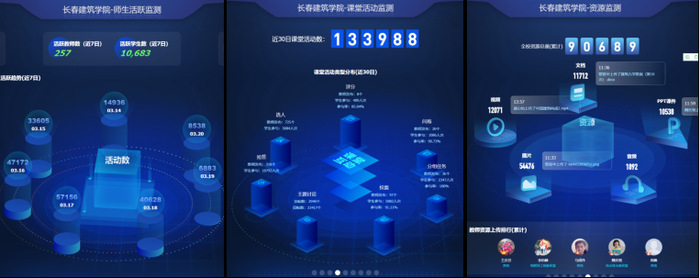 为有效开展线上教学,提高学生学习积极性,教师不断优化教学设计,加强师生之间互动交流。通过教学平台监测,师生活跃度逐日递增,活跃师生数达348972个;教师利用学习通发布课堂选人、课堂抢答、主题讨论等课堂活动数133988个;利用平台建设图片、视频、音频、PPT课件、文档等课程资源90689个。