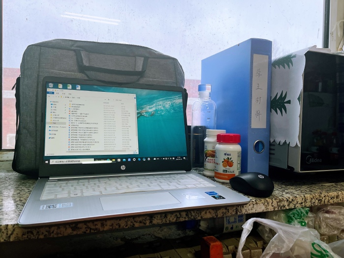 接到封校通知后,何老师便在宿舍值班室的窗台上建立起了临时办公桌。她严格遵守学校疫情防控的安排部署,向同学们传递最新疫情情况以及学校要求,通过年级群、班长群、学委群、寝室长群全面管理,精准反馈。