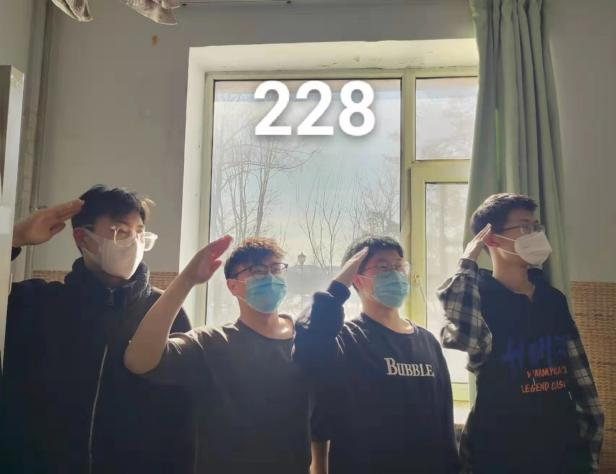 封寝期间避免相互接触,何老师采用百变的拍照姿势对学生寝室情况进行检查,在枯燥的封寝生活中给学生带来了不少乐趣。寝室长根据何老师规定的拍照手势或姿势组织室友进行实时拍照并上传,这种简单有趣的方式,同学们都非常喜欢,也都积极配合。通过照片,何老师能够及时掌握学生的寝室情况,也能在一个个口罩下面感受学生的身心状态。