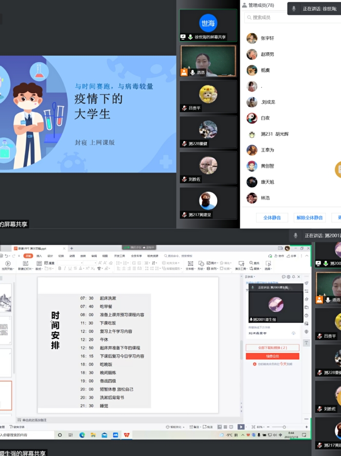 最后陈老师嘱咐大家要做好个人防护。坚定信心,提高认知;坚守规定,科学防疫;坚持学习,筑梦未来;坚明约束,家校同行。让我们一同静待山河无恙,春暖花开!