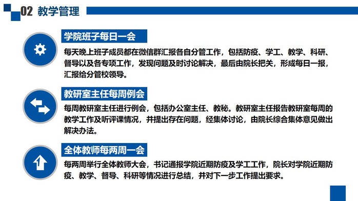 分享交流会上,各教学单位参会领导与分享单位在如何更好地开展“双特”课堂活动;如何多层面多角度的开展工作;如何提升教学质量和教学效果;如何加强基层教学组织建设等方面进行了深入的交流和讨论,协同解决共性问题,互鉴互享典型做法,为各单位的教学组织与管理工作开阔了思路,提供了经验。