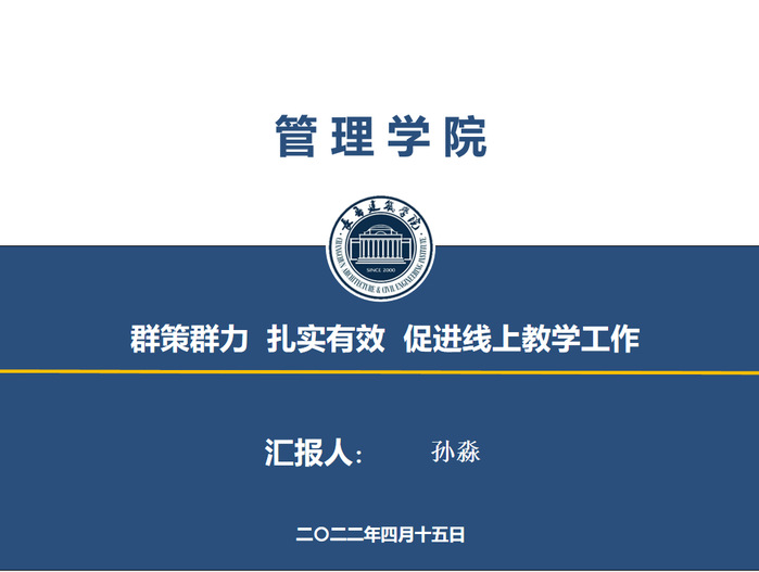 4月15日,管理学院副院长孙淼作题为《群策群力 扎实有效 促进线上教学工作》的主题分享,她从教学运行、教学管理、教学督导、特色与创新等方面介绍了管理学院的经验做法。目前,工商管理2020级专升本学生处于毕业论文教学阶段,学院统筹谋划,于3月28日组织开展了毕业论文线上启动会,选派的11位高水平指导教师和学生齐聚云端,并通过在学习通平台建课的方式发布毕业论文任务和《毕业论文工作进程表》,确保学生保质保量地完成毕业论文,为各学院相关课程的开展提供了宝贵的参考经验。