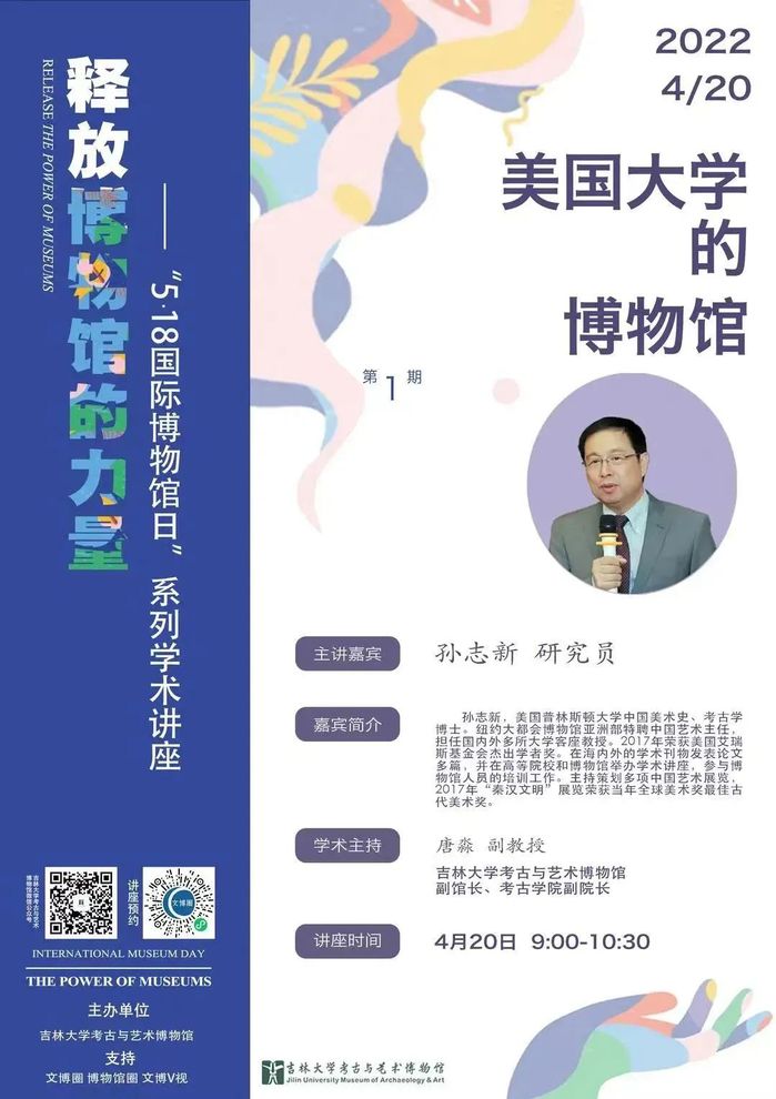 在文创学术月第一场活动中,我院参与了吉林大学主办“5·18国际博物馆日”系列学术讲座,本次系列讲座由吉林大学考古与艺术博物馆召集,邀请国内外颇具影响力的四位优秀学者、专家于4月20日-5月20日期间分4期学术讲座,带你深入了解一流大学的一流博物馆,接轨中国博物馆的运营体系,展望博物馆的未来,助力释放中国博物馆的力量。第5-7期我们将邀请吉林大学博士生导师鞠惠冰为我们带来《广告理想与创意传播》、吉林省高级农艺师马家艳结合吉林省文创产业现状讲授《吉林省花卉产业与文创产品开发研究》、长春工业大学人文信息学院苏航教授将结合后疫情时代的消费现状为我们带来《后疫情时代的营销蝶变》,文化盛宴,期待您的参与!