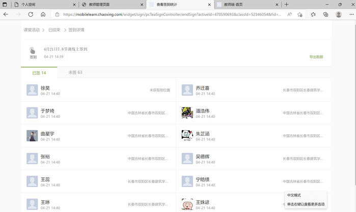 2.课中强化。每节课准时利用学习通平台进行签到管理,同时了解学生的定位信息,确保在疫情特殊时期学生的安全情况。使用学习通多种互动功能,定期反馈互动数据,督促学生积极参与互动。