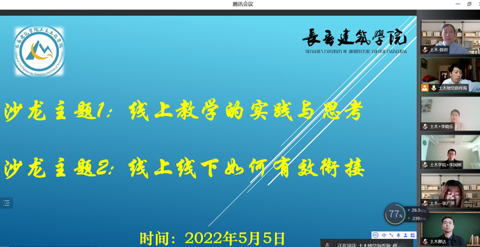 为进一步做好疫情防控期间线上教学工作,切实推进教师信息化教学水平提升,更好地发挥基层教学组织在立德树人、人才培养和教学研究中的重要作用,学校教师教学发展处、教务处牵头,各学院(部)基层教学组织承办开展了系列线上教学沙龙活动。第二场活动由土木工程学院城市地下空间教研室承办。