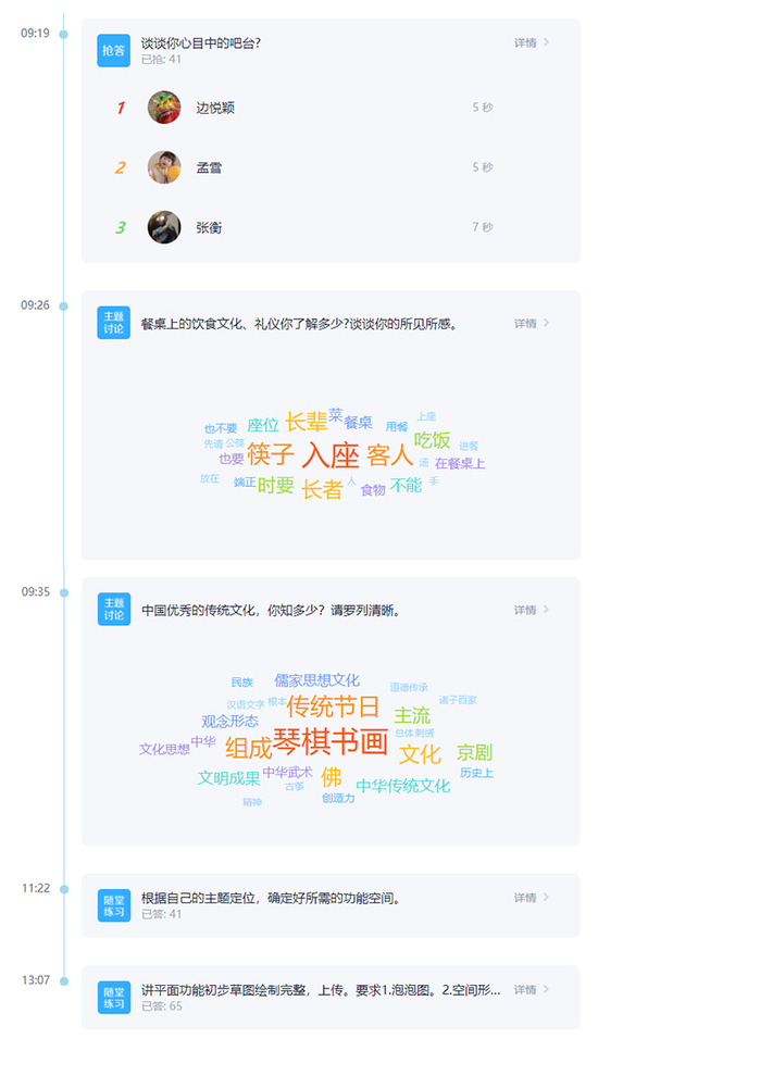 课中采取“5E”教学法,融入思政,通过学习通推送主题讨论、选人、抢答、随堂练习等来进行互动。