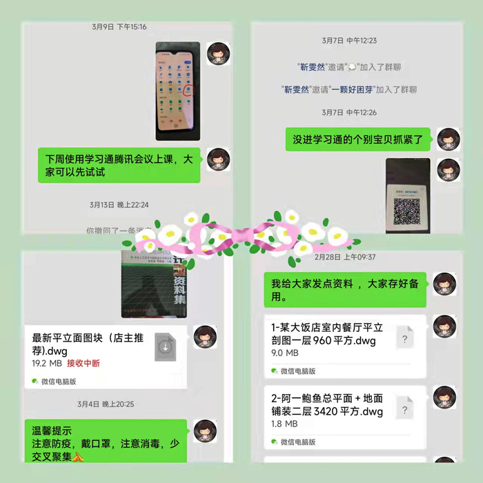 通过微信群共享素材,发布授课信息,督促学生做好线上学习的准备并进行相关资料的预览和学习。了解学生在疫情防控时期以来的生活动态和需求,进行学情分析,引导学生以乐观、积极心态面对疫情,增强战胜疫情的信心和决心,相信学校、相信国家。