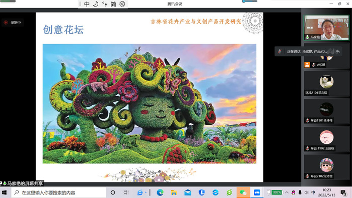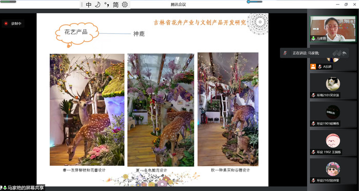 “绿色梦想”“长城之花”“不咸春晓”.....花与文化的碰撞,激起别样的美丽。马家艳老师从文创基本理论出发,梳理了吉林省文化历史、花文化发展史,挖掘吉林省地方特色及代表文化,在分析花卉文创典型案例讲解中,探索吉林省花卉产业与文创产品开发研究。