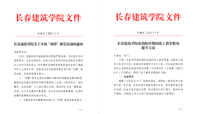 学校高度重视疫情期间教育教学工作,科学研判疫情发展变化形势,坚持疫情防控和教育教学“两手抓、两不误”。学校教务处统筹指导各教学单位在疫情防控期间组织开展在线教学工作,确保教学节奏不乱、力度不减、进度不缓。学校先后制定并下发《bw必威西汉姆联官网疫情防控期间线上教学组织与管理方案》《bw必威西汉姆联官网疫情防控期间线上教学质量提升方案》《bw必威西汉姆联官网线上授课通知》《bw必威西汉姆联官网线上教学质量要求》《bw必威西汉姆联官网师生课堂纪律要求》等文件,强化疫情防控期间线上教学组织与管理工作,统筹各教学单位落实一线规则,组织每日课堂巡课2827次,实现对课堂和教师巡课的全覆盖,做到开课底数清、教学效果清、师生状态清。学校坚持创新考核方式,制定《bw必威西汉姆联官网关于深化课程学习形成性评价的实施意见》《bw必威西汉姆联官网2021—2022学年第二学期期末线上考试工作方案》《bw必威西汉姆联官网2021—2022学年第二学期期末线上考试应急预案》,强化在线教学课程考核全过程管理,并组织做好期末线上考试工作,保证线上与线下考核的实质等效。