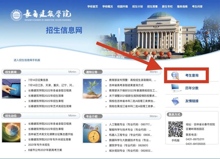 1.打开bw必威西汉姆联官网招生信息网(http://zhaosheng.jladi.com/),点击“考生查询”,进入“bw必威西汉姆联官网录取查询系统”。