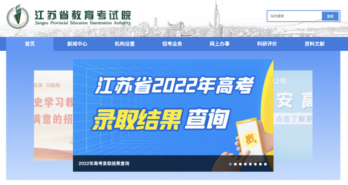 1.请家长及考生,搜索考生所在地的教育考试院网站进行查询。以江苏省为例,搜索“江苏省教育考试院”,点击进入江苏省2022年高考录取结果查询页面。