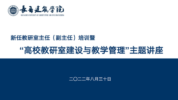 为进一步加强学校教研室主任队伍建设,提升教研室建设水平,8月30日下午,学校在建筑与规划学院报告厅举办2022年新任教研室主任(副主任)培训。学校相关领导出席讲座,相关部门负责人、各教学单位院长(副院长)、教研室主任(副主任)及部分教师共120余人参加。