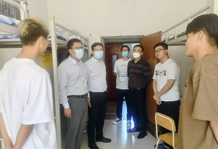 中秋佳节之际,为了解部分提前入校新生情况,帮助2022级新生更快适应大学生活,9月10日上午,学校校长张兴海,执行校长孙雷,党委书记王宝龙,党委副书记、副校长王玫等学校领导分别走访了新生宿舍,给新生带去董事长的亲切慰问和学校的关怀期望。