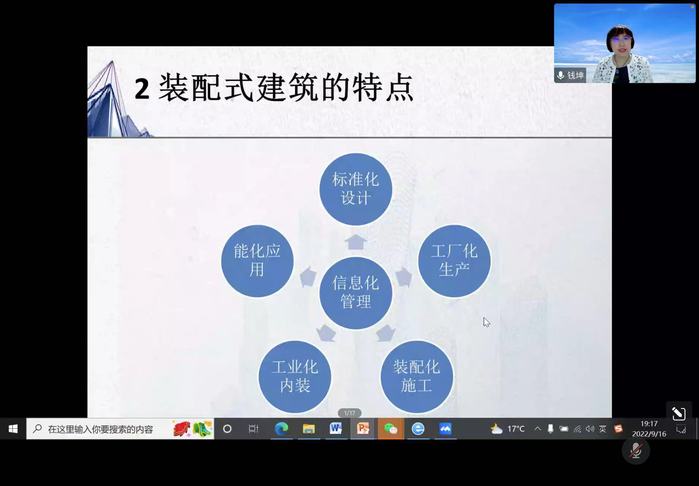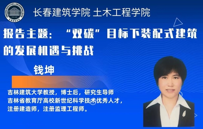 报告会上,钱坤教授从“双碳”理念下装配式建筑行业发展背景,装配式建筑定义、装配式建筑特点、装配式建筑优点、装配式建筑体系、装配式建筑的分类、装配式混凝土结构以及装配式混凝土结构的组织过程等方面,进行了详细的讲解。钱坤教授是吉林建筑大学研究生导师,具有博士后科研工作经历,具有国家注册建造师,注册监理工程师等资质。她依据多年丰富的专业实践经验,通过大量图片及视频,为师生们讲解了许多书本上学不到的知识。钱坤教授的报告深入浅出,图文并茂,用通俗易懂的语言给师生们上了一堂生动的专业课。她在报告结束前强调说:“装配式建筑发展前景非常广阔,需要我们共同努力,携手共建我们建筑人美好的明天。”