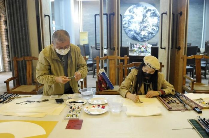 吉林省中山书画院的书画家现场挥毫泼墨,吉林省中山文学艺术界联谊会的艺术家呈现精彩文艺节目,共同送上节日祝福。