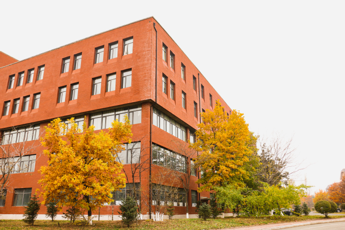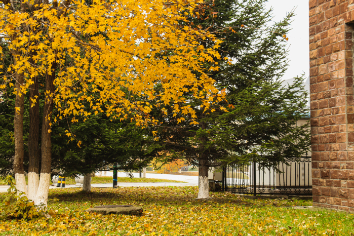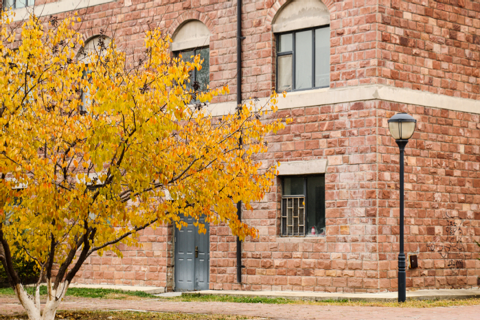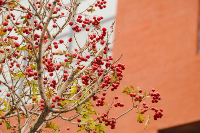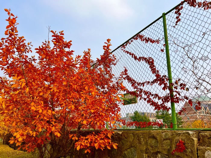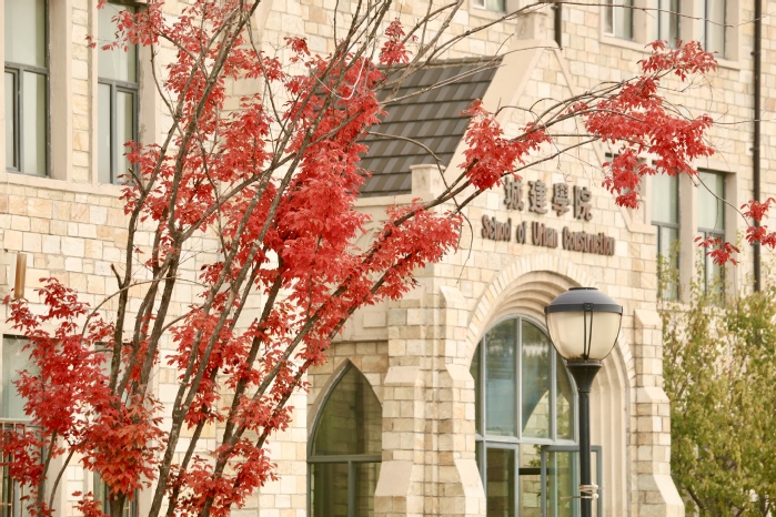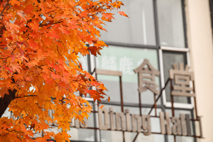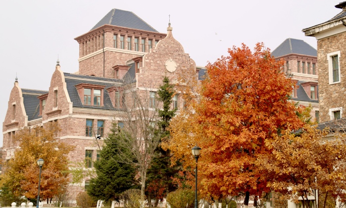 此时校园披上了一袭红妆,