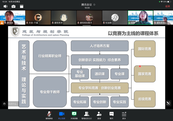 10月28日下午,建筑与规划学院开展了“以竞赛为主线的建筑设计类课程教学研讨”沙龙活动,学校教师教学发展处、相关教学单位教师参与了交流学习。活动由建筑与规划学院建筑学教研室主任滕佳佳主持,副院长张蕾副作主题发言,建筑学教研室各年级负责人参与了研讨发言。本次活动以学科竞赛为主线,对“开放式”、“对接性”、“重实践”、“强能力”的育人模式、“对标行业”的育人标准、“赛教结合”的育人过程进行深度交流探讨,将学科竞赛融入到各年级的设计类课程专题中,力求达到“以赛促学、以赛促行”的培养模型、“以赛促教、以赛促改”的培养手段、“以赛促训、以赛促建”的改革思路,进一步推动建筑与规划学院的学科建设发展。