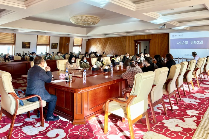 学校副校长以《人生之路为师之道》为题作主题报告,开启了新教师培训第一课。他结合38年的工作经验,与大家分享了如何成为一名好教师,指出教师的使命和任务,要以师德为先,教学为要,科研为基,教书育人,并对新教师成长发展提出了十条建议。他与大家分享了领域育人、交叉融合、拓宽视野的“学科专业三视野”;以学生、学习、专业为中心的“教师教学三中心”;解惑、释惑、生惑的“学生学习三深度”;关注人才、人格、人心的“人才培养三关注”;普通、优良、卓越的“教育教学三层次”;提升、定位、规划的“个人发展三阶段”。他从理想和事业的高度为新教师指明了成长和发展方向,强调教师是学校发展最基本的基石,从小教师到好教师再到大先生,长建是立命之本,是事业之根,我们大家要坚守初心使命,践行责任担当,全力以赴,砥砺前行,助力学校建设发展。
