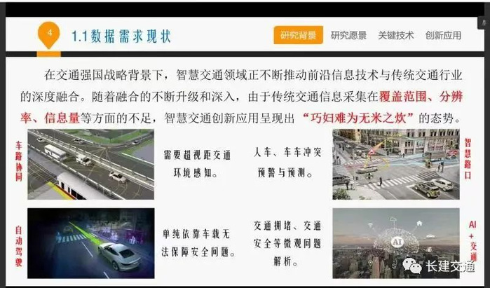林赐云教授首先介绍了在交通强国战略背景下,智慧交通领域正不断推动前沿信息技术与传统交通行业的深度融合。他指出路侧激光雷达主要配置在两个重要场景,一是城市道路,二是高速公路。如在城市道路的交叉口,采用对角线布置两台基于路侧的3D激光雷达,便可实时精准地识别行人、非机动车等弱势交通群体和机动车的行为状态。